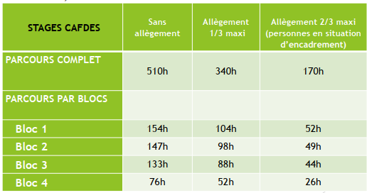 A titre indicatif : VOLUME D’HEURES DES STAGES en fonction des allègements possibles